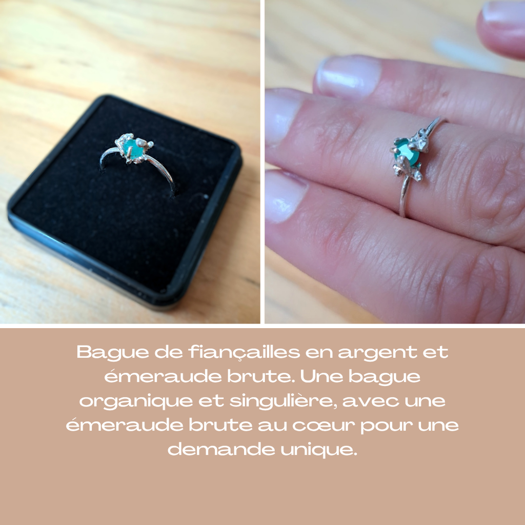 Ensemble, nous imaginons le bijou : je vous conseille sur les formes, textures et pierres, puis je le façonne à la main dans mon atelier en Belgique. Chaque création devient un talisman personnel, chargé de sens.